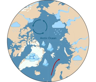 The Arctic is warming faster than any other region on Earth. Melting glaciers, sea ice, and permafrost, along with increasing precipitation, are delivering unprecedented amounts of freshwater into the Arctic Ocean. This influx reduces the salinity of the surface ocean, a phenomenon known as freshening.